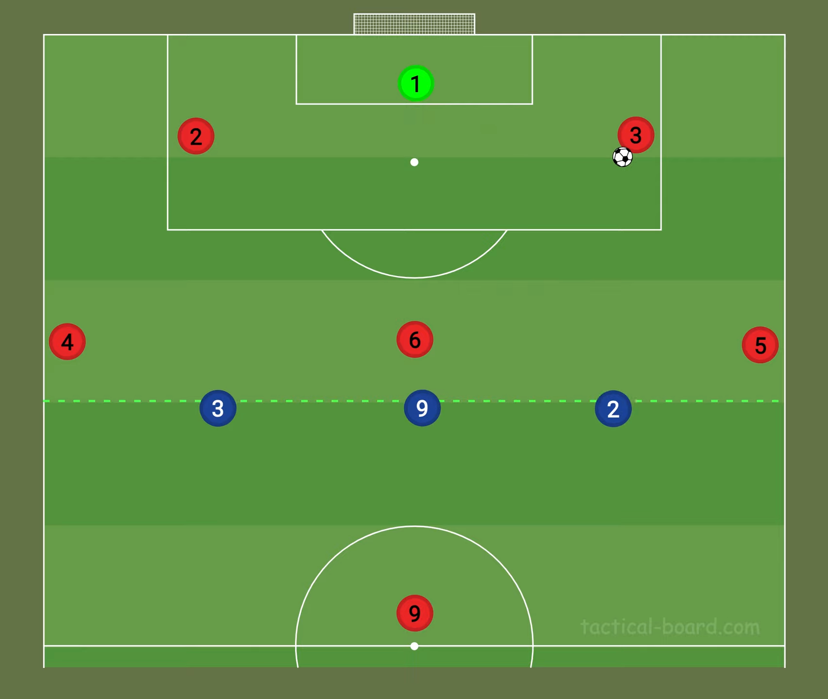 - Ställ upp laget i en 2-3-1-formation, helst inklusive en målvakt