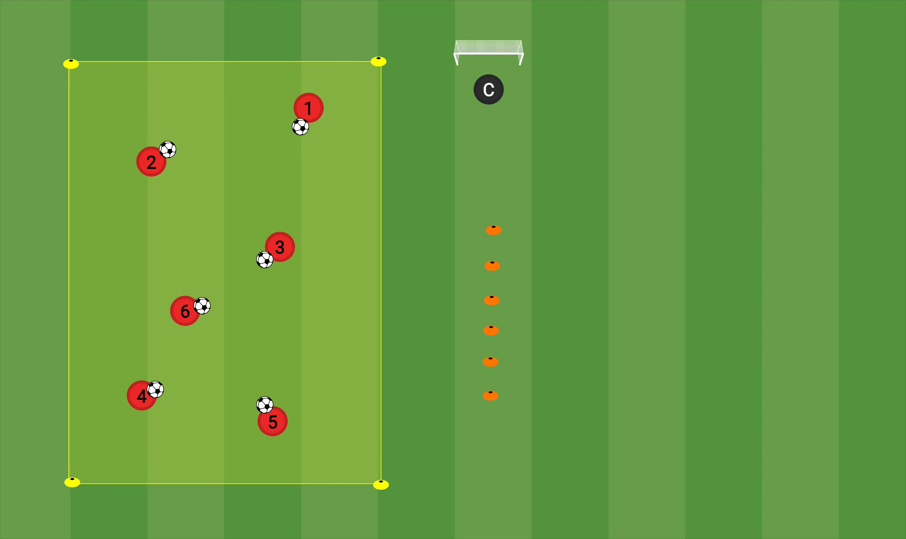 I den här övningen tränas flera centrala förmågor samtidigt. Spelarna utvecklar bollkontroll under press – de måste dribbla i hög trängsel och skydda sin boll mot aktiva motspelare. De övar orientering och beslutsfattande när de snabbt växlar mellan att anfalla (sparka ut andras bollar) och försvara (skydda sin egen). När de lämnat rutan tränar de driv och finmotorisk koordination i konbanan samt precision i avslut framför mål. Den ständiga kampen om att bli “Kungen i djungeln” utvecklar dessutom konkurrenskraft och mental uthållighet – spelarna lär sig att aldrig ge upp, eftersom varje fullbordat avslut ger en ny chans att vinna spelet.